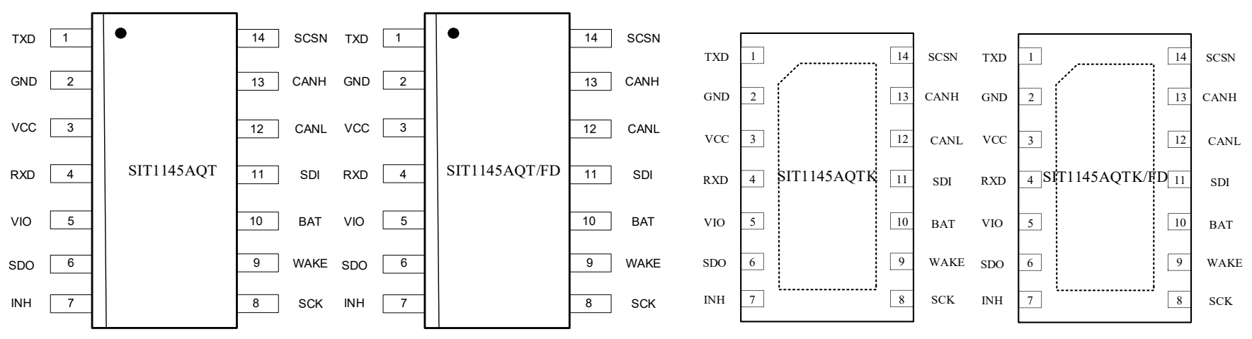 SIT1145AQ和SIT1145AQ/FD兩個版本都包含SOP14和DFN4.5*3-14封裝。