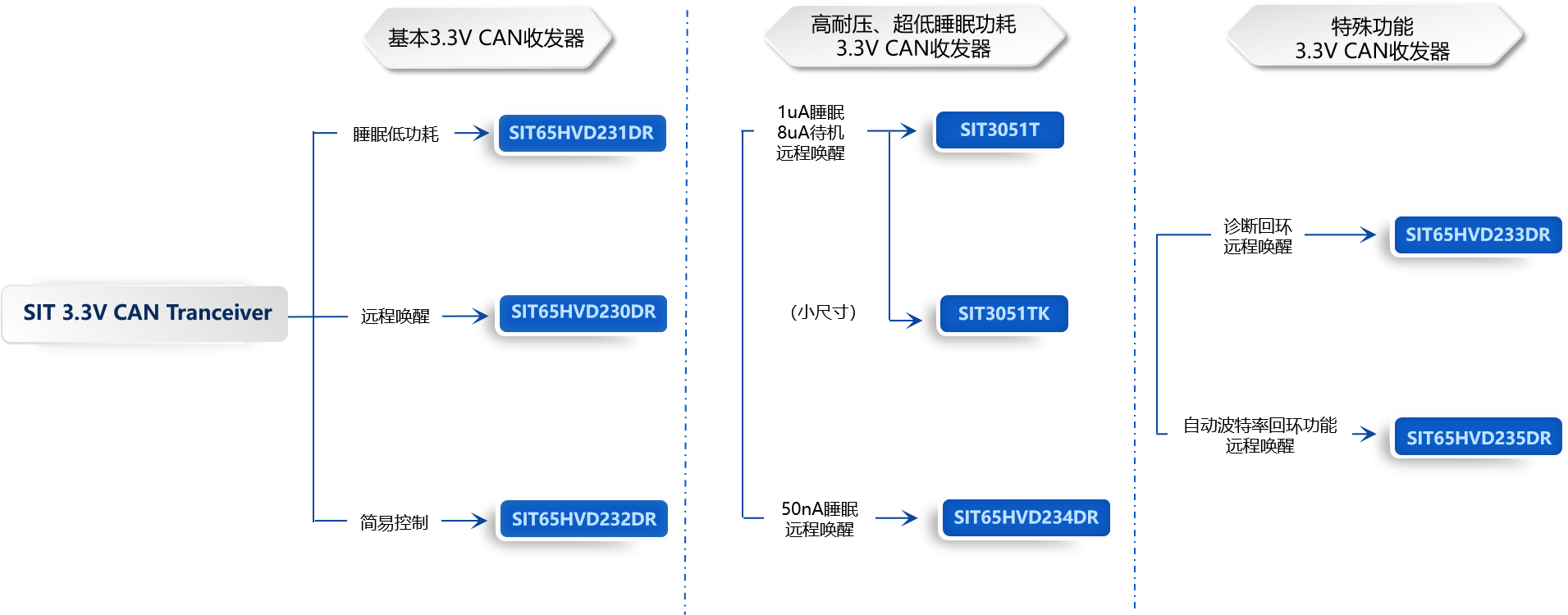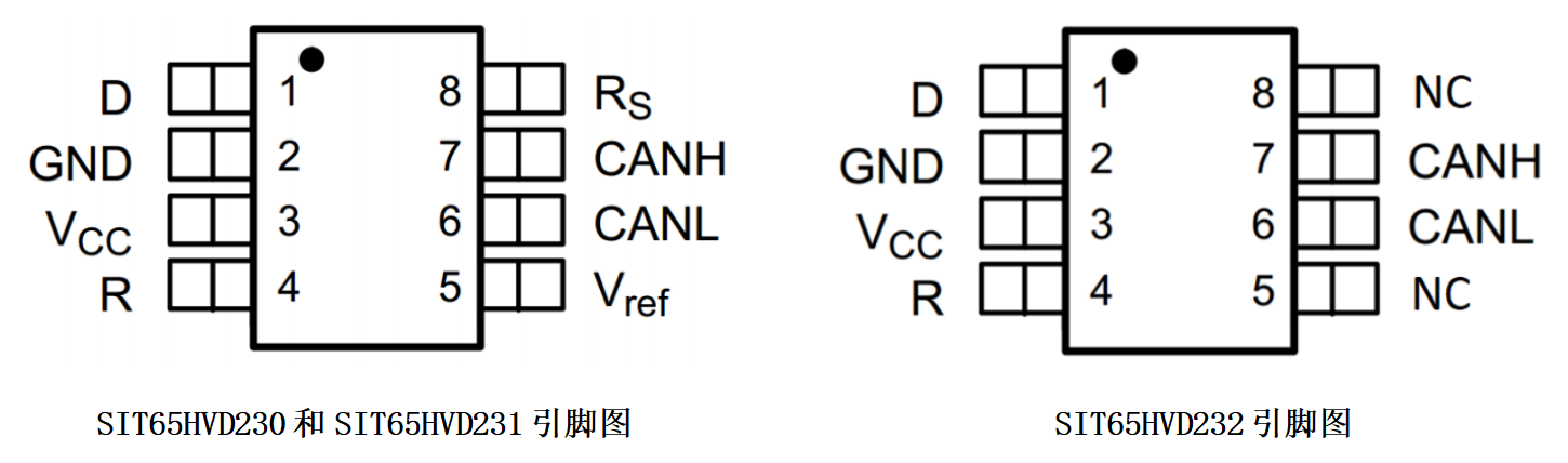 芯力特3.3V單電源CAN收發(fā)器主要有SIT65HVD23x系列(SIT65HVD230-235)和SIT3051系列;如下圖1: