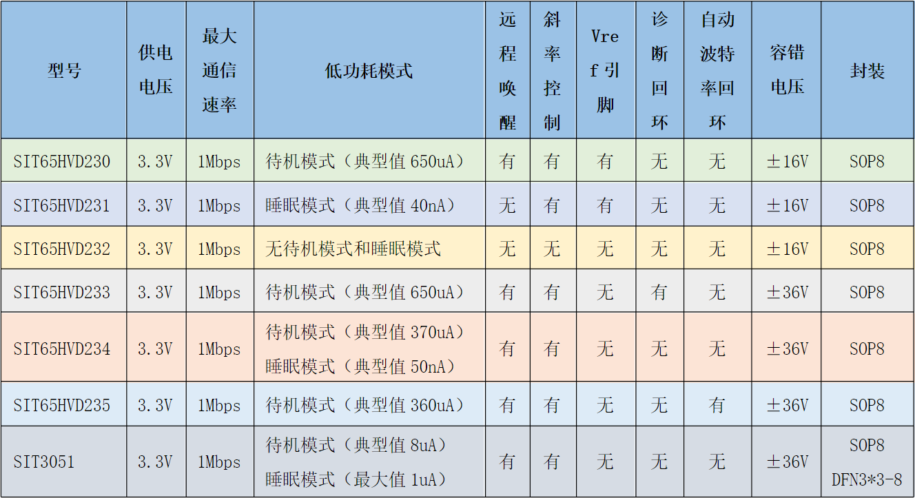 表1 芯力特3.3V CAN收發(fā)器系列芯片功能對比