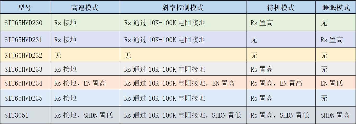 表2 芯力特3.3V CAN收發(fā)器系列芯片模式切換表