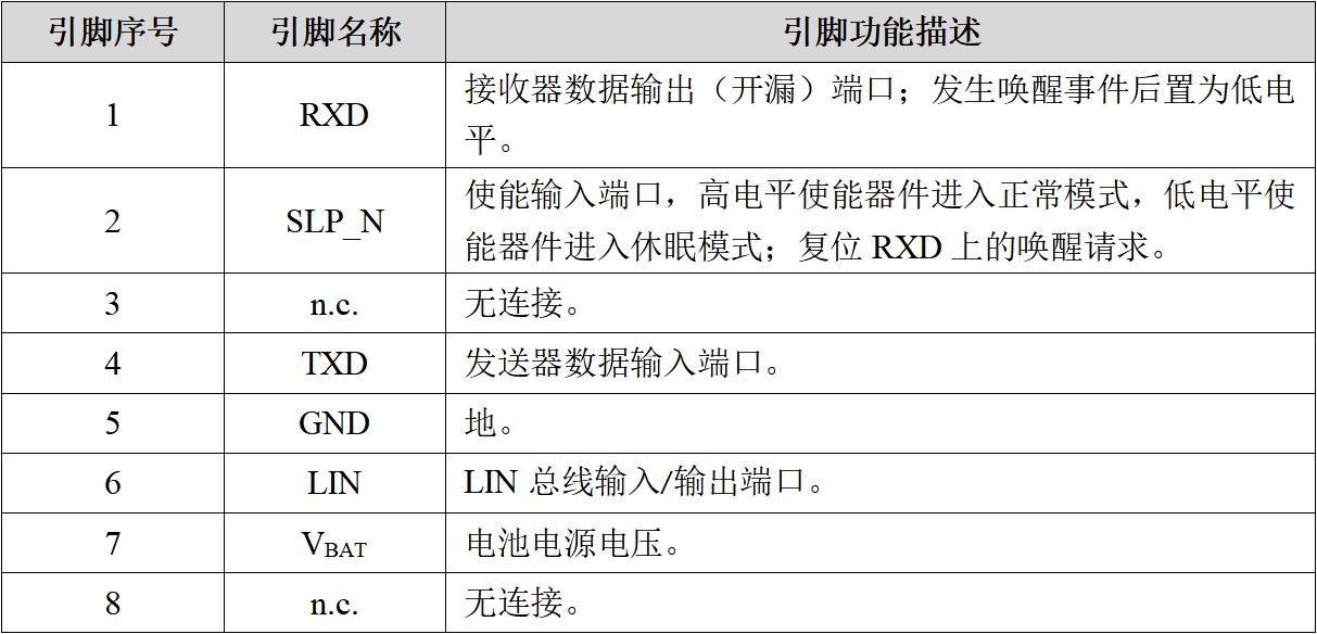 SIT1027是一款國產(chǎn)本地互聯(lián)網(wǎng)絡(luò)LIN收發(fā)器芯片,符合LIN 2.0、LIN 2.1、LIN 2.2、LIN 2.2A、ISO 17987-4:2016 (12V) 和SAE J2602標(biāo)準(zhǔn)。主要適用于使用1kbps至20kbps傳輸速率的車載網(wǎng)絡(luò)。SIT1027通過TXD 引腳控制 LIN 總線的狀態(tài),可將協(xié)議控制器的發(fā)送數(shù)據(jù)流轉(zhuǎn)換為具有最佳壓擺率和波形整形的總線信號(hào),以最大程度地減少電磁輻射發(fā)射(EME)。LIN總線輸出引腳具有內(nèi)部上拉電阻,僅當(dāng)用作主機(jī)節(jié)點(diǎn)時(shí),才需將LIN總線端口通過一個(gè)與二極管串聯(lián)的外部電阻上拉至VBAT。SIT1027通過LIN引腳接收總線上的數(shù)據(jù)流,并由接收器的輸出引腳RXD將數(shù)據(jù)傳送到外部的微控制器。